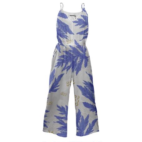Wide leg jumpsuit with adjustable spaghetti straps invisible side seam zipper and a tie belt.