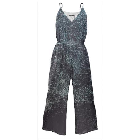 Wide leg jumpsuit with adjustable spaghetti straps invisible side seam zipper and a tie belt.