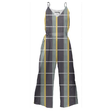 Wide leg jumpsuit with adjustable spaghetti straps invisible side seam zipper and a tie belt.