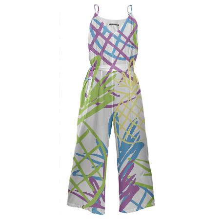 Wide leg jumpsuit with adjustable spaghetti straps invisible side seam zipper and a tie belt.