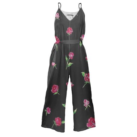 Wide leg jumpsuit with adjustable spaghetti straps invisible side seam zipper and a tie belt.