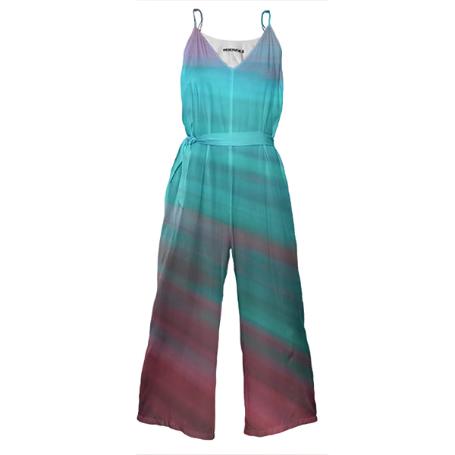 Wide leg jumpsuit with adjustable spaghetti straps invisible side seam zipper and a tie belt.