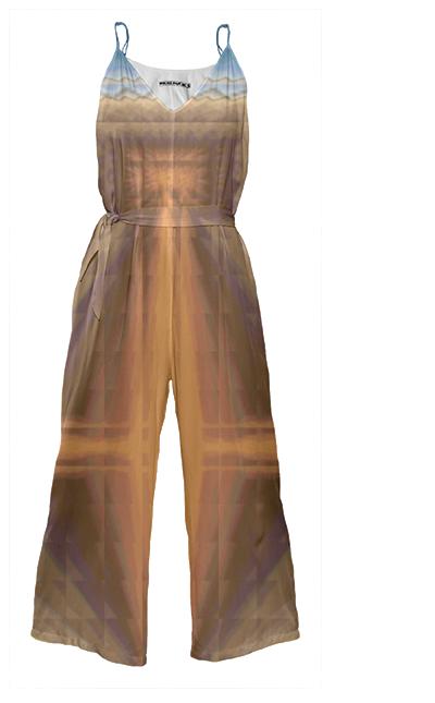 Wide leg jumpsuit with adjustable spaghetti straps invisible side seam zipper and a tie belt.