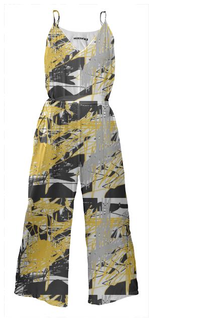 Wide leg jumpsuit with adjustable spaghetti straps invisible side seam zipper and a tie belt.