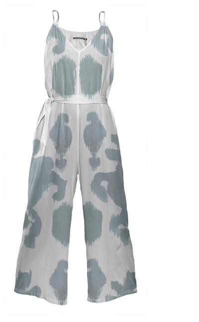 Wide leg jumpsuit with adjustable spaghetti straps invisible side seam zipper and a tie belt.
