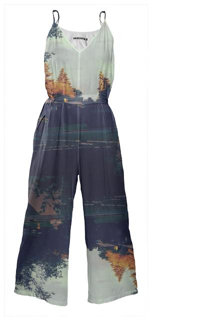 Wide leg jumpsuit with adjustable spaghetti straps invisible side seam zipper and a tie belt.