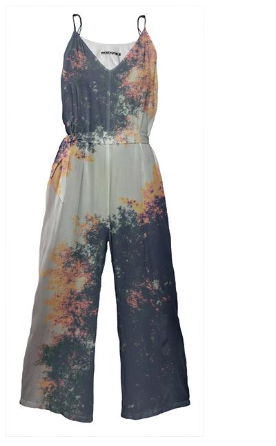 Wide leg jumpsuit with adjustable spaghetti straps invisible side seam zipper and a tie belt.