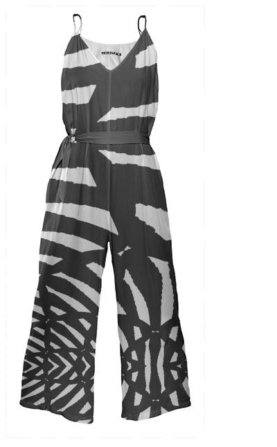 Wide leg jumpsuit with adjustable spaghetti straps invisible side seam zipper and a tie belt.