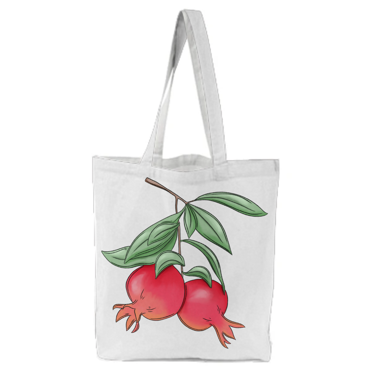 Pomegranate fruits on branch with leaves hand drawn illustration. Ripe tropical exotic fruit.