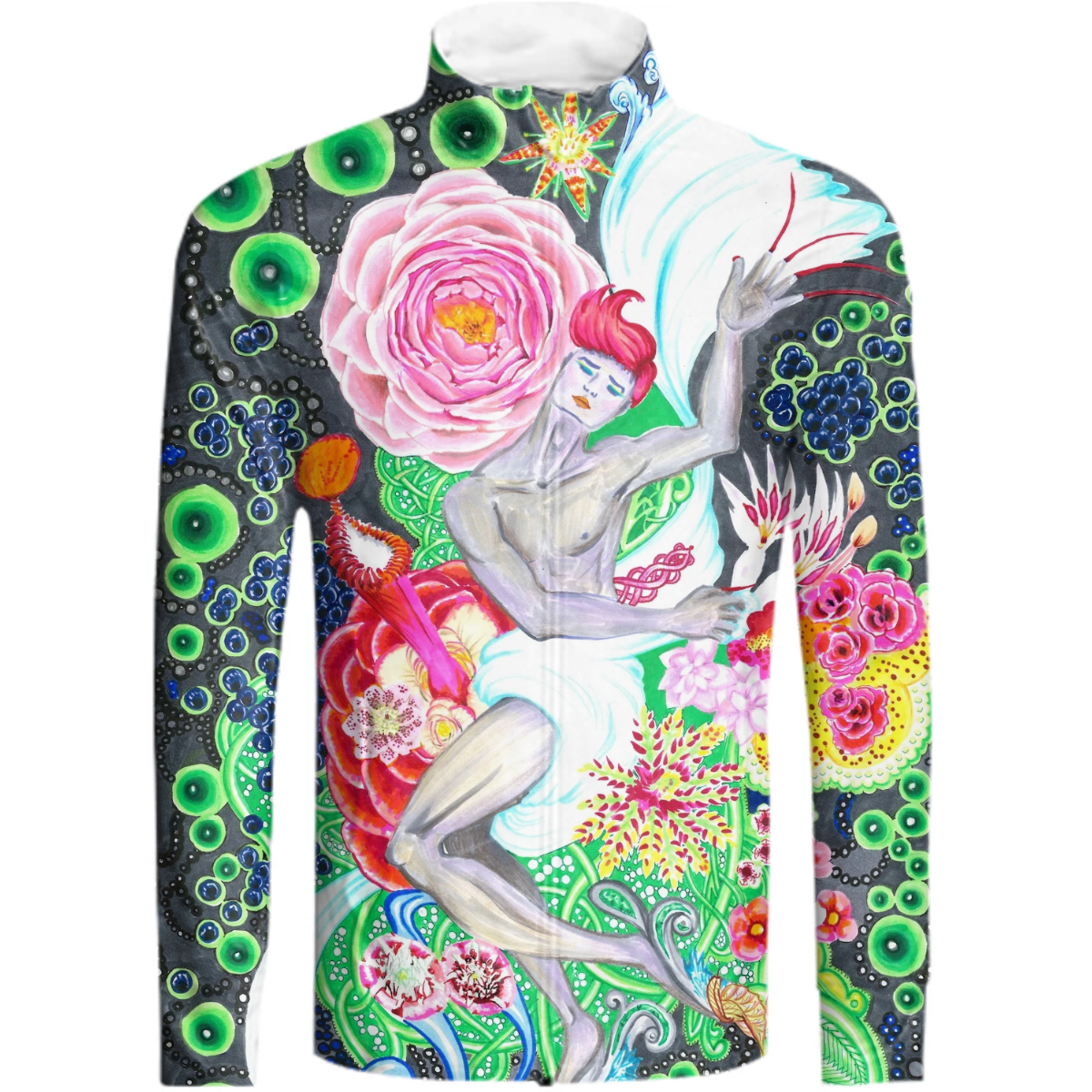 Thin track jacket with front pockets elastic cuffs and cotton ribbing collar.