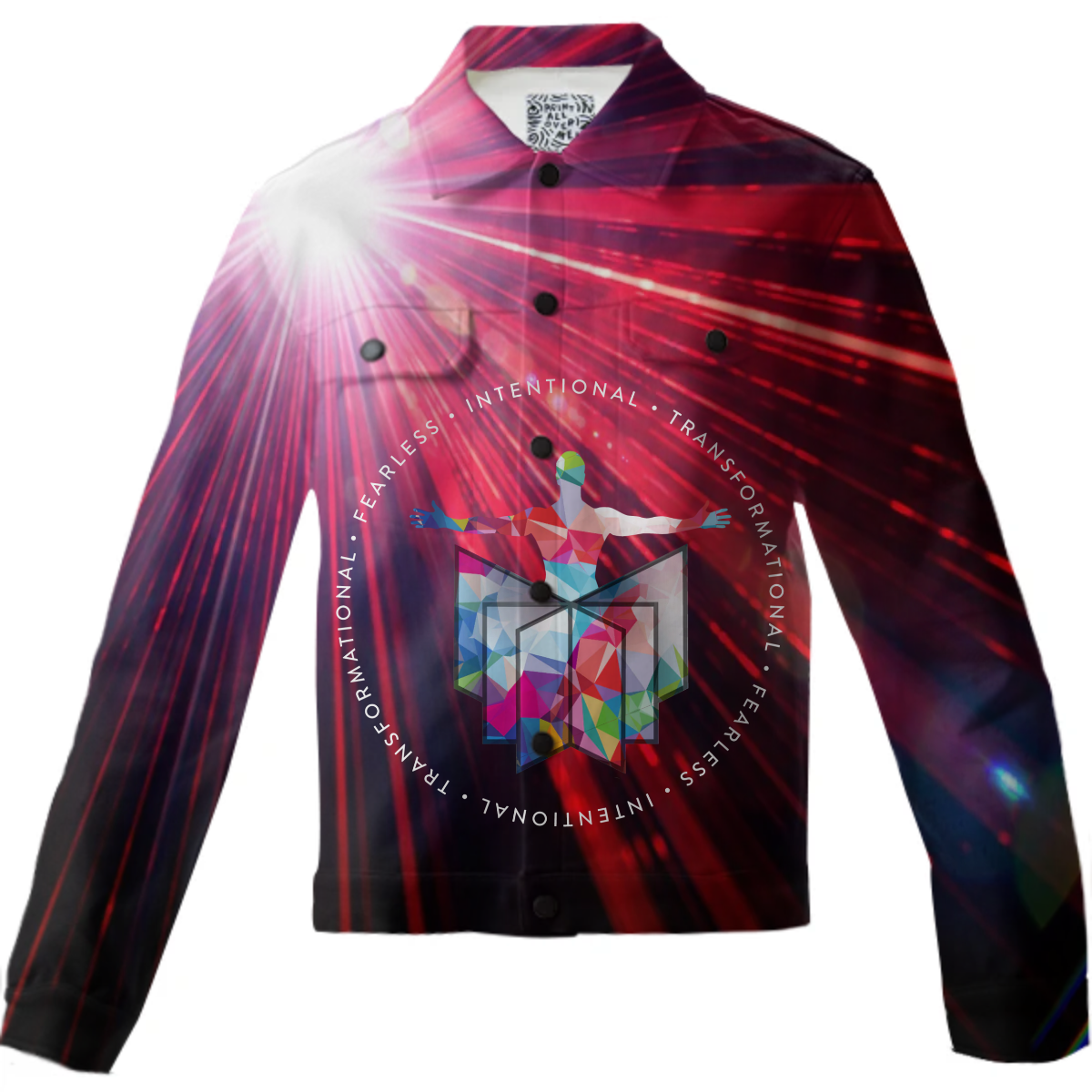 The uploaded file will be printed on the entire front and be mirrored on the back. Because of our cut and sew process some print elements on pockets seams and sleeves might not match up. For best results please upload a PNG or JPG with RGB color profile and dimensions of at least 40 inches width by 30 inches length. DPI can be as low as 72.