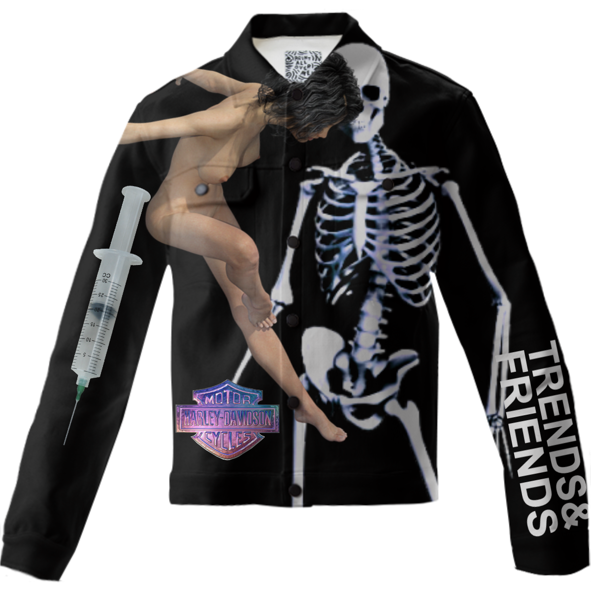 The uploaded file will be printed on the entire front and be mirrored on the back. Because of our cut and sew process some print elements on pockets seams and sleeves might not match up. For best results please upload a PNG or JPG with RGB color profile and dimensions of at least 40 inches width by 30 inches length. DPI can be as low as 72.
