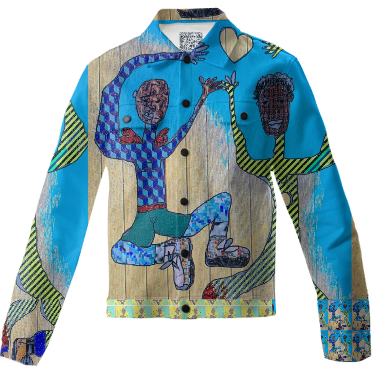 The uploaded file will be printed on the entire front and be mirrored on the back. Because of our cut and sew process some print elements on pockets seams and sleeves might not match up. For best results please upload a PNG or JPG with RGB color profile and dimensions of at least 40 inches width by 30 inches length. DPI can be as low as 72.