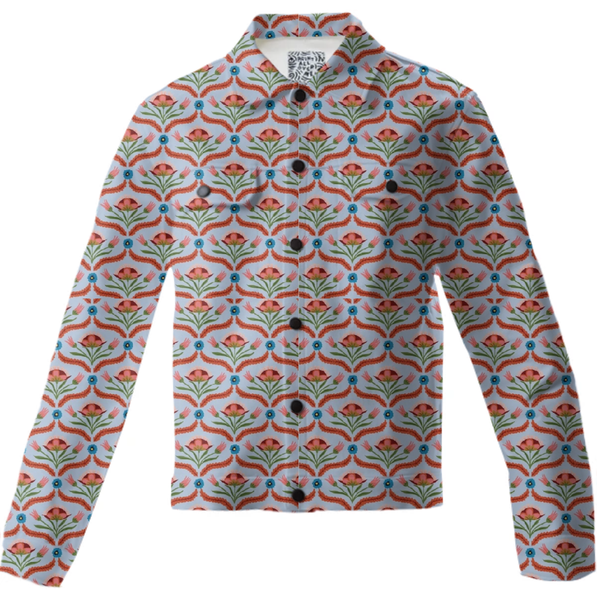 This classic denim jacket with a unisex fit features front snaps with two flap pockets on the chest and side seam pockets.