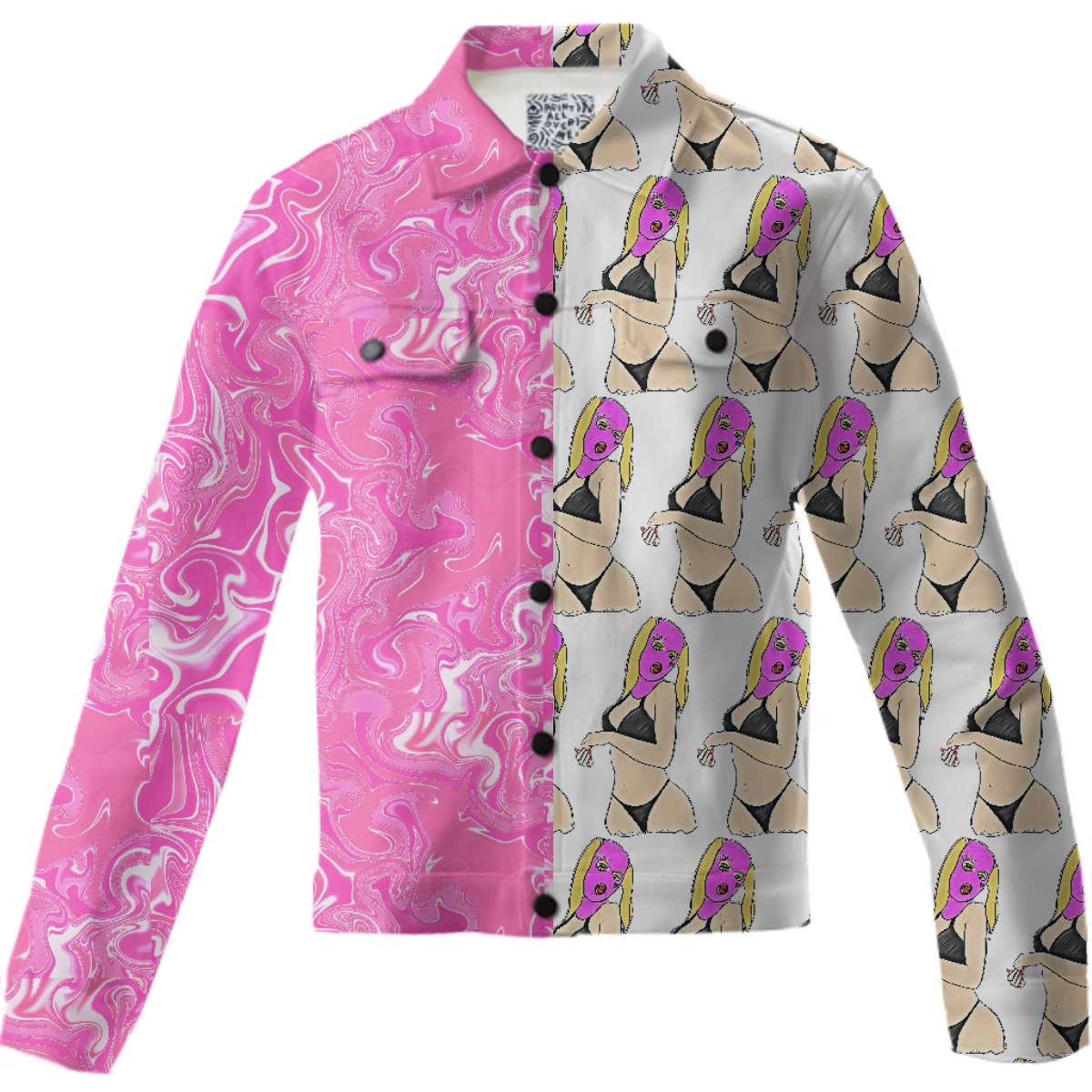 The uploaded file will be printed on the entire front and be mirrored on the back. Because of our cut and sew process some print elements on pockets seams and sleeves might not match up. For best results please upload a PNG or JPG with RGB color profile and dimensions of at least 40 inches width by 30 inches length. DPI can be as low as 72.