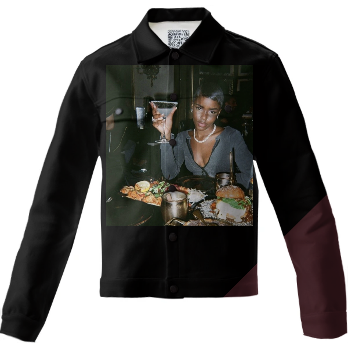 This classic denim jacket with a unisex fit features front snaps with two flap pockets on the chest and side seam pockets.