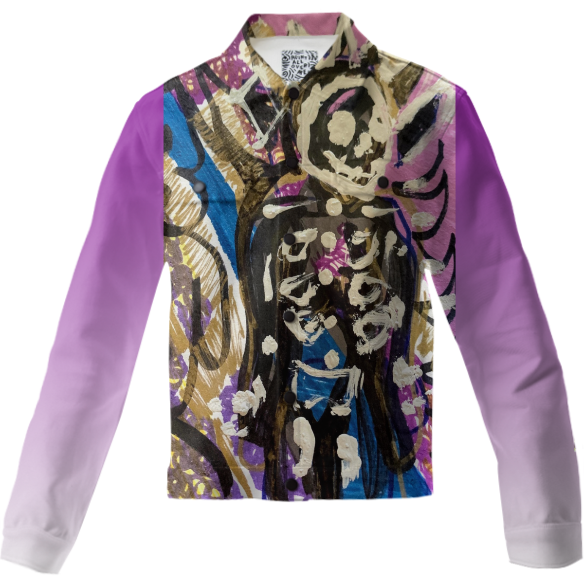 The uploaded file will be printed on the entire front and be mirrored on the back. Because of our cut and sew process some print elements on pockets seams and sleeves might not match up. For best results please upload a PNG or JPG with RGB color profile and dimensions of at least 40 inches width by 30 inches length. DPI can be as low as 72.