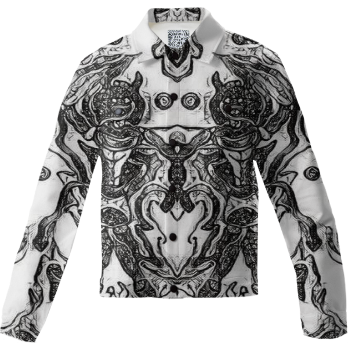 The uploaded file will be printed on the entire front and be mirrored on the back. Because of our cut and sew process some print elements on pockets seams and sleeves might not match up. For best results please upload a PNG or JPG with RGB color profile and dimensions of at least 40 inches width by 30 inches length. DPI can be as low as 72.