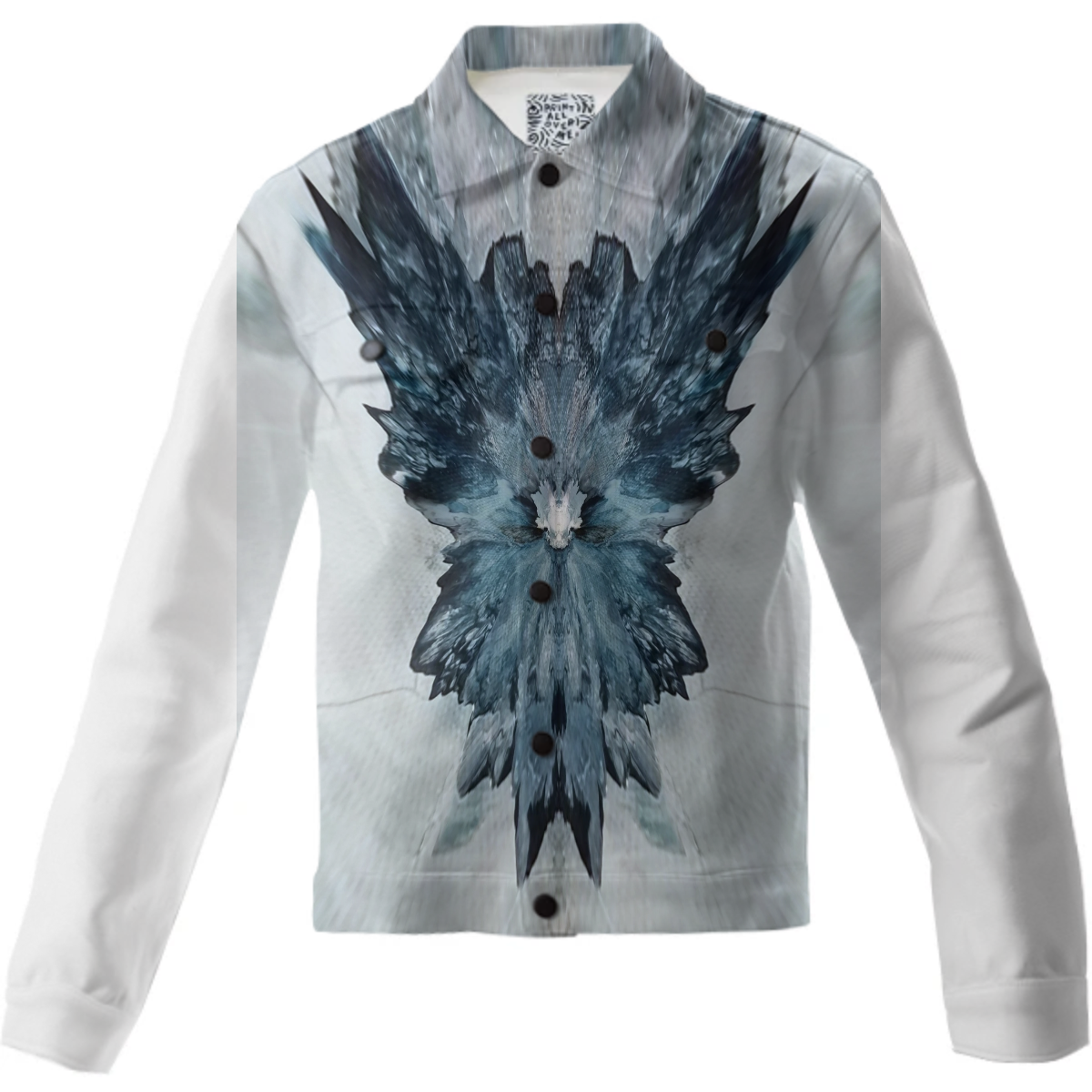 This classic denim jacket with a unisex fit features front snaps with two flap pockets on the chest and side seam pockets.