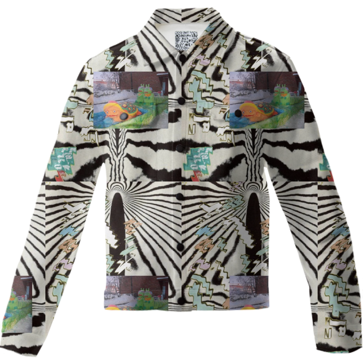 The uploaded file will be printed on the entire front and be mirrored on the back. Because of our cut and sew process some print elements on pockets seams and sleeves might not match up. For best results please upload a PNG or JPG with RGB color profile and dimensions of at least 40 inches width by 30 inches length. DPI can be as low as 72.