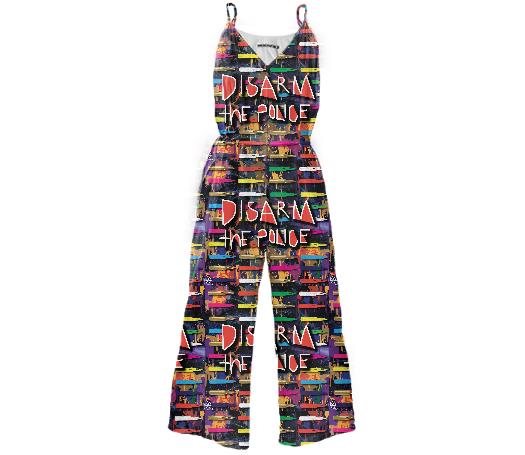 Wide leg jumpsuit with adjustable spaghetti straps invisible side seam zipper and a tie belt.