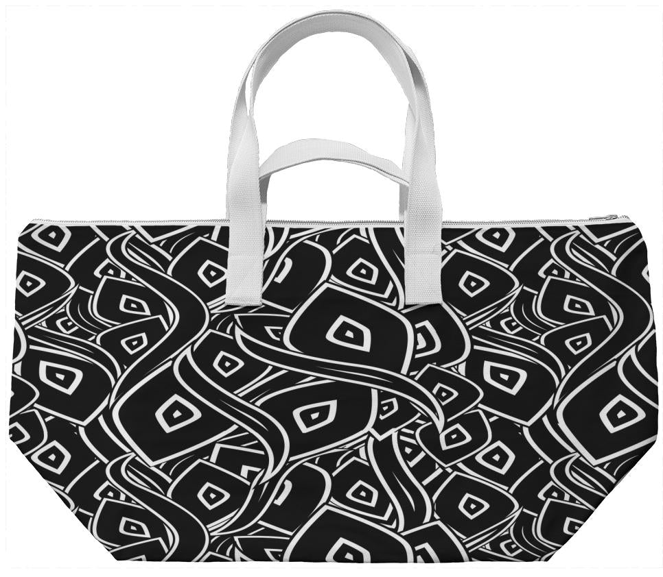 This weekend bag fits all the basics for a short trip. Two lengths of black or white webbing handles makes it easy to carry. Inner zip up pocket ensures easy access to smaller important items.