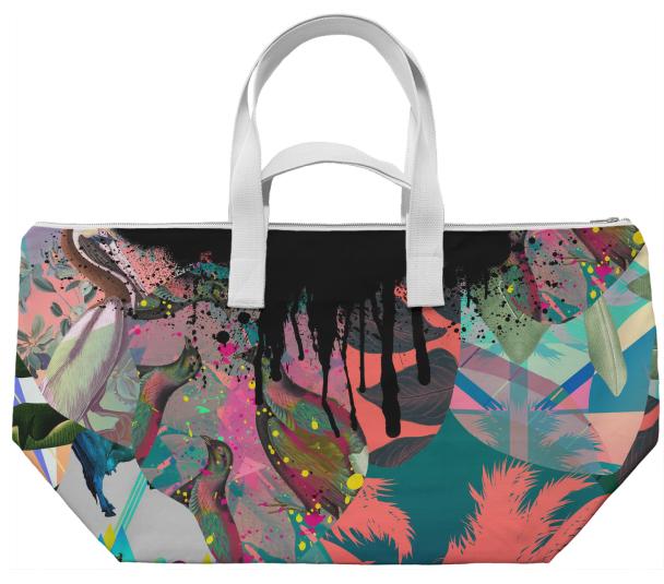 This weekend bag fits all the basics for a short trip. Two lengths of black or white webbing handles makes it easy to carry. Inner zip up pocket ensures easy access to smaller important items.