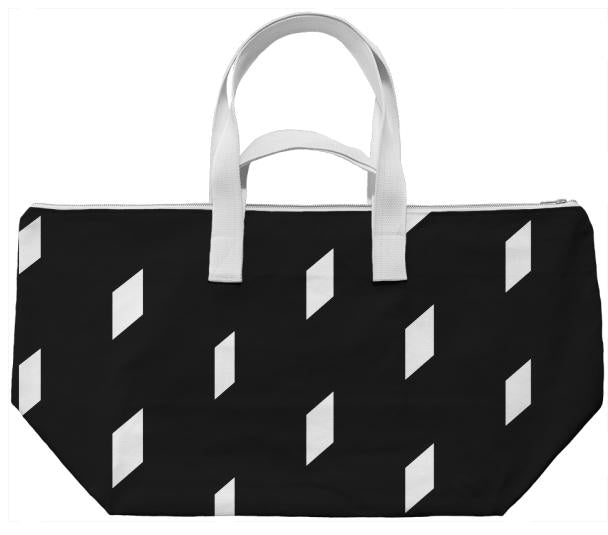 This weekend bag fits all the basics for a short trip. Two lengths of black or white webbing handles makes it easy to carry. Inner zip up pocket ensures easy access to smaller important items.