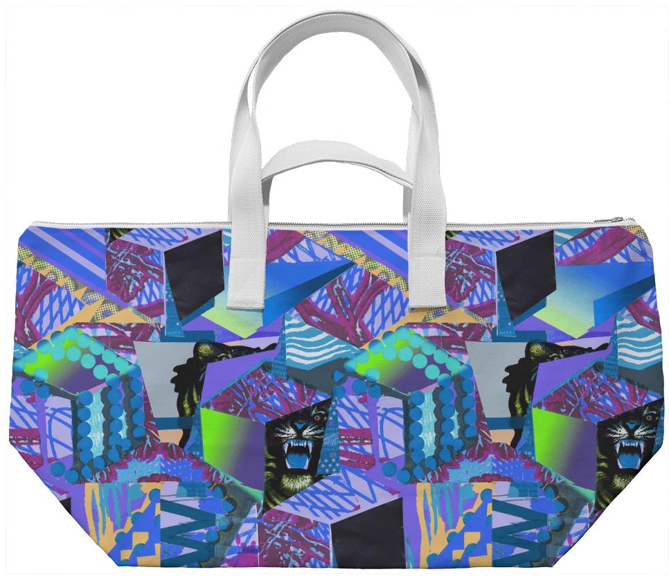 This weekend bag fits all the basics for a short trip. Two lengths of black or white webbing handles makes it easy to carry. Inner zip up pocket ensures easy access to smaller important items.