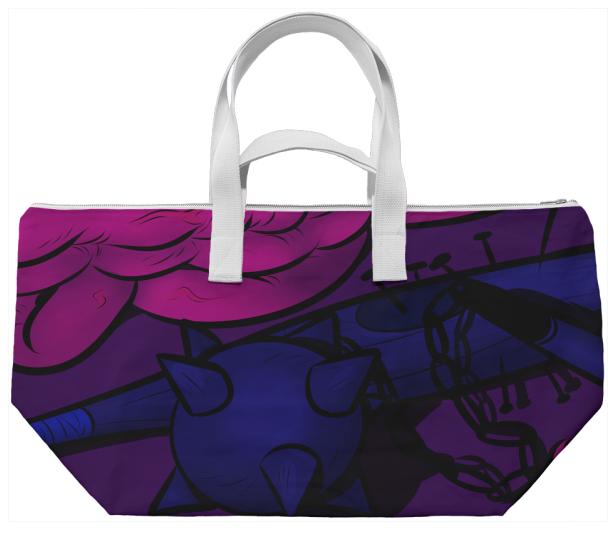 This weekend bag fits all the basics for a short trip. Two lengths of black or white webbing handles makes it easy to carry. Inner zip up pocket ensures easy access to smaller important items.