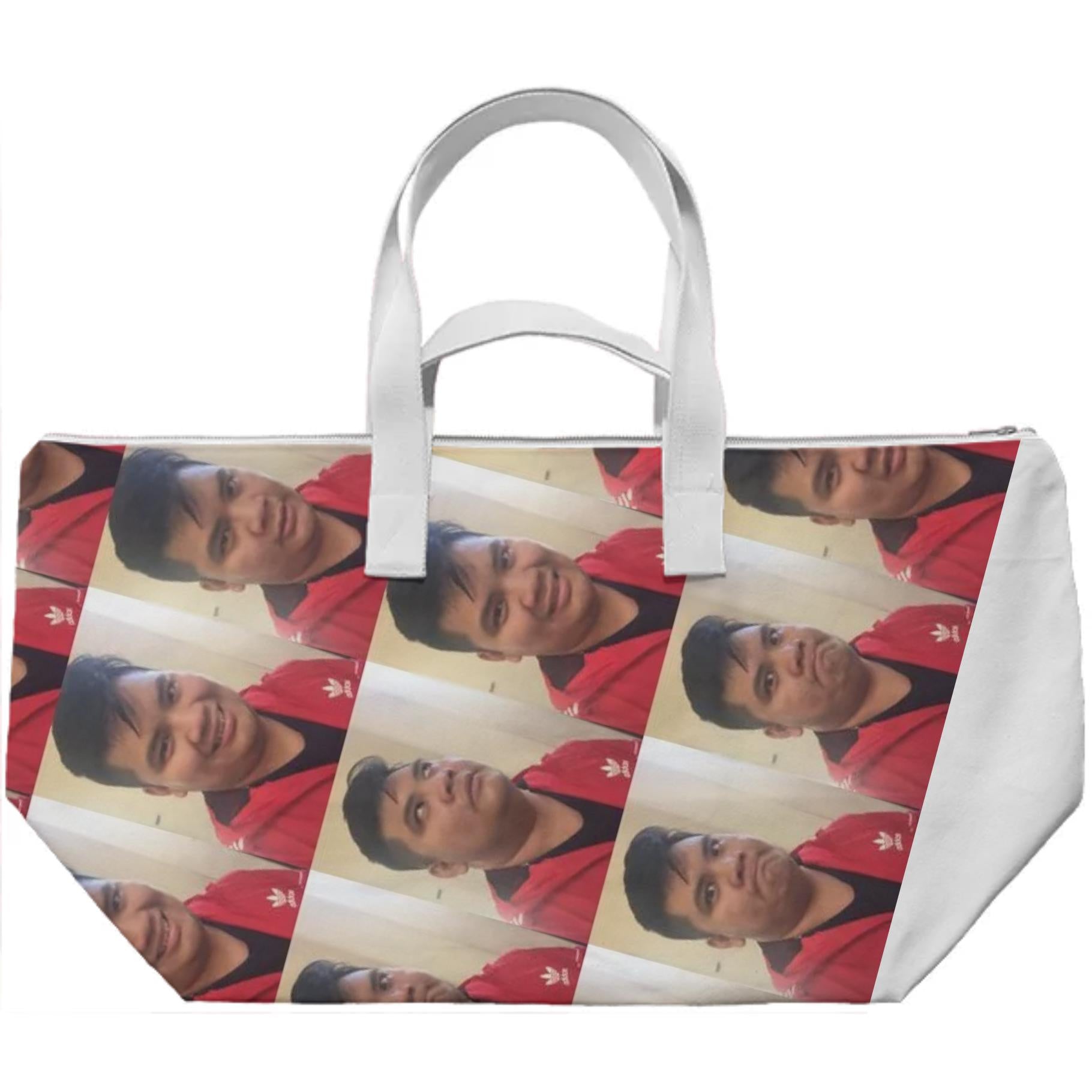 This weekend bag fits all the basics for a short trip. Two lengths of black or white webbing handles makes it easy to carry. Inner zip up pocket ensures easy access to smaller important items.
