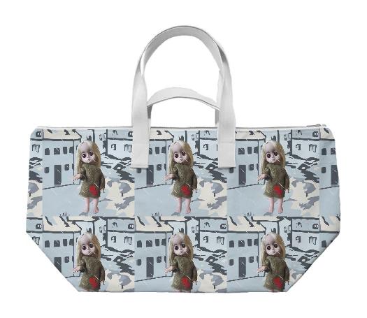 This weekend bag fits all the basics for a short trip. Two lengths of black or white webbing handles makes it easy to carry. Inner zip up pocket ensures easy access to smaller important items.