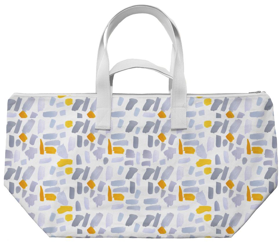 This weekend bag fits all the basics for a short trip. Two lengths of black or white webbing handles makes it easy to carry. Inner zip up pocket ensures easy access to smaller important items.