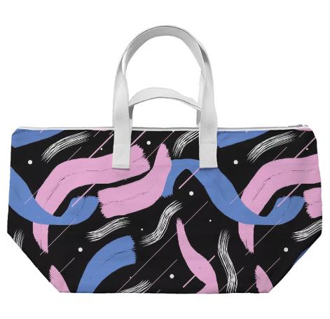 This weekend bag fits all the basics for a short trip. Two lengths of black or white webbing handles makes it easy to carry. Inner zip up pocket ensures easy access to smaller important items.