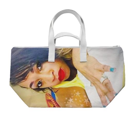 This weekend bag fits all the basics for a short trip. Two lengths of black or white webbing handles makes it easy to carry. Inner zip up pocket ensures easy access to smaller important items.