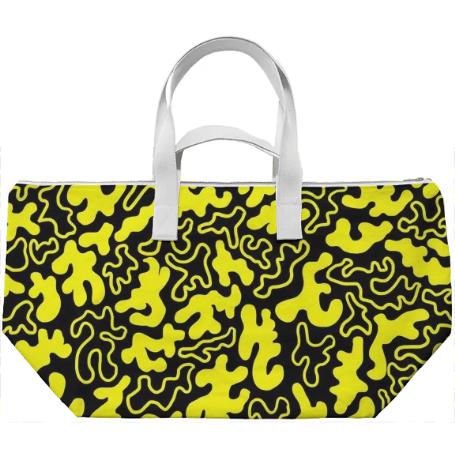 This weekend bag fits all the basics for a short trip. Two lengths of black or white webbing handles makes it easy to carry. Inner zip up pocket ensures easy access to smaller important items.