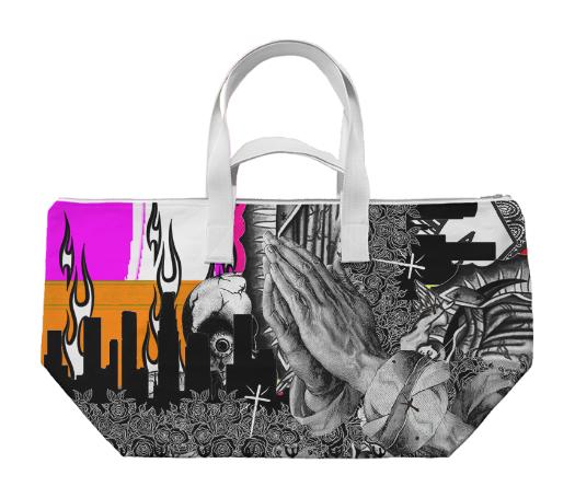 This weekend bag fits all the basics for a short trip. Two lengths of black or white webbing handles makes it easy to carry. Inner zip up pocket ensures easy access to smaller important items.
