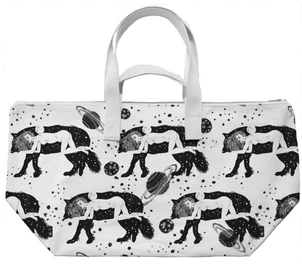 This weekend bag fits all the basics for a short trip. Two lengths of black or white webbing handles makes it easy to carry. Inner zip up pocket ensures easy access to smaller important items.