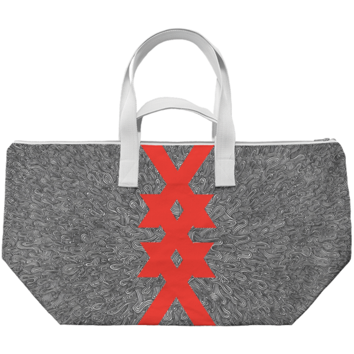 This weekend bag fits all the basics for a short trip. Two lengths of black or white webbing handles makes it easy to carry. Inner zip up pocket ensures easy access to smaller important items.