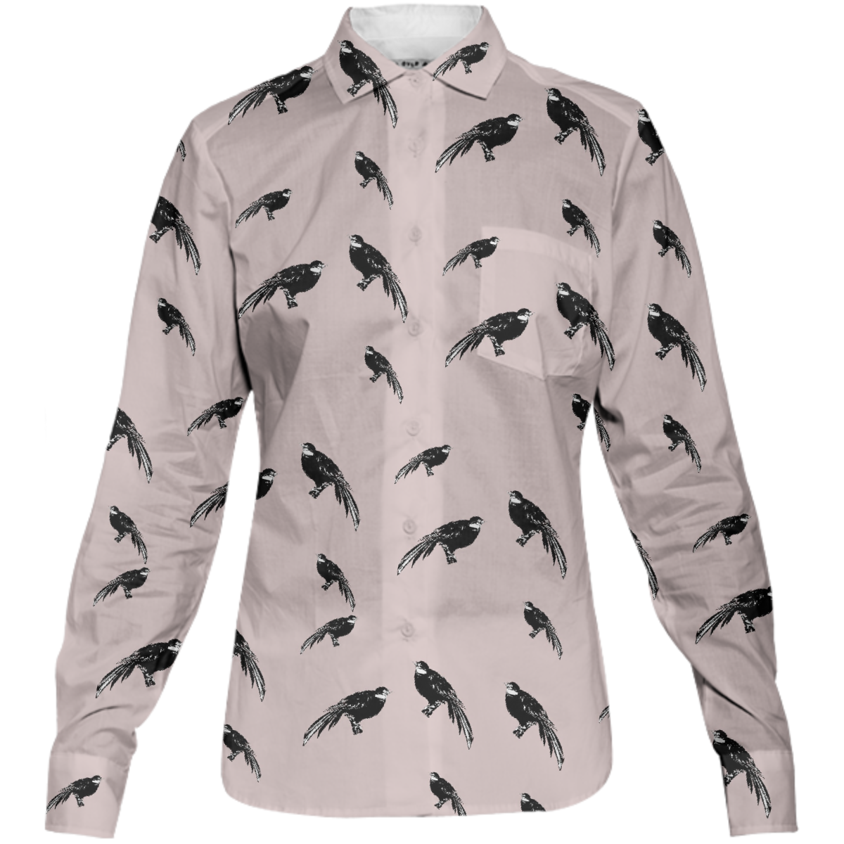 Basic womens button down with spread shirt collar front left breast pocket and side darts for a slim fit.