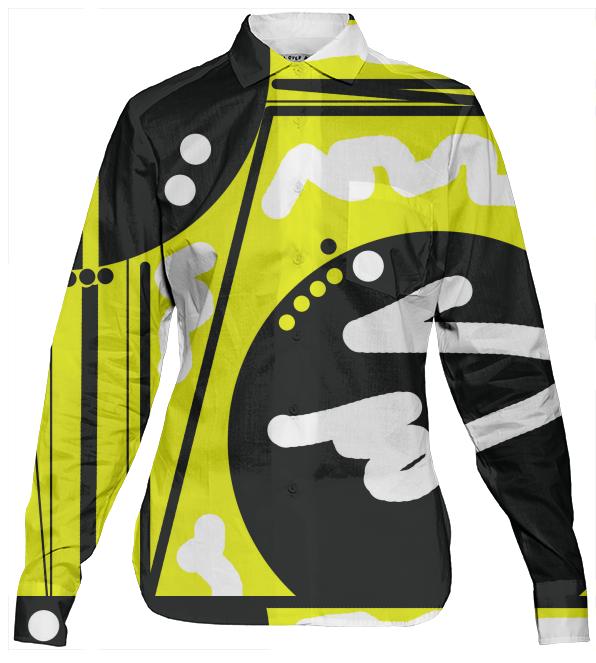 Black Yellow and White Geometric 1 Women s Button Down Shirt