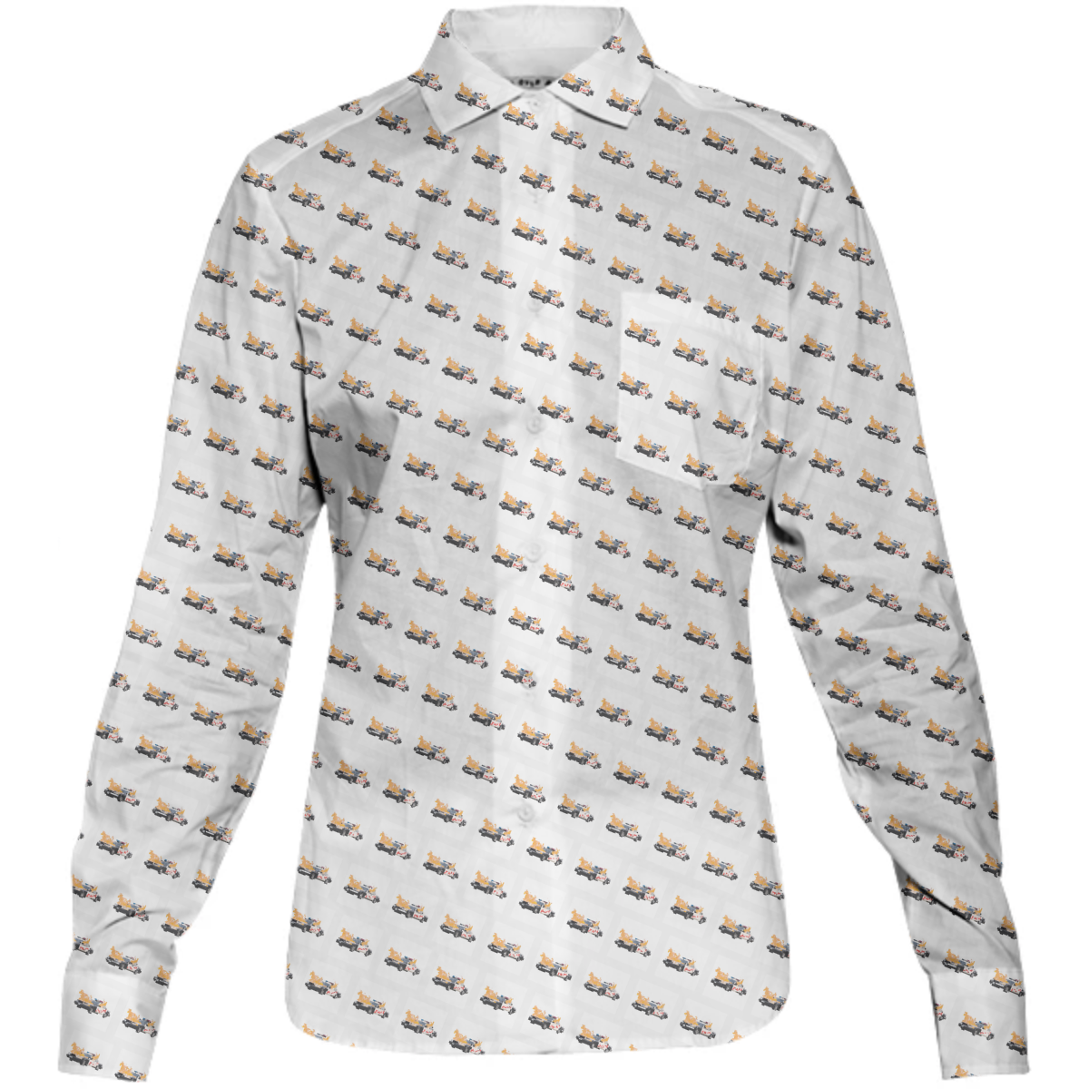 Basic womens button down with spread shirt collar front left breast pocket and side darts for a slim fit.
