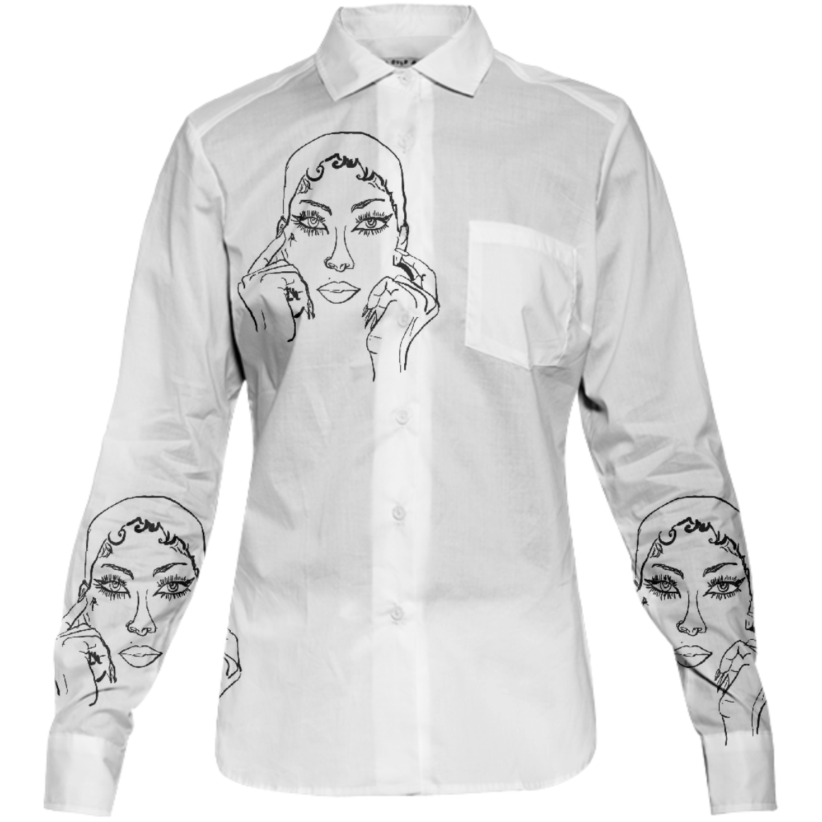 Basic womens button down with spread shirt collar front left breast pocket and side darts for a slim fit.