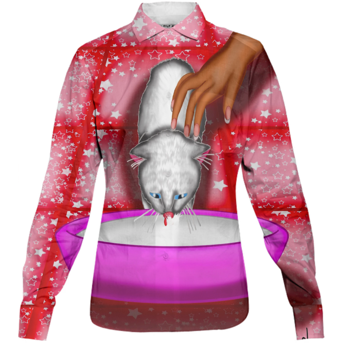 Basic womens button down with spread shirt collar front left breast pocket and side darts for a slim fit.