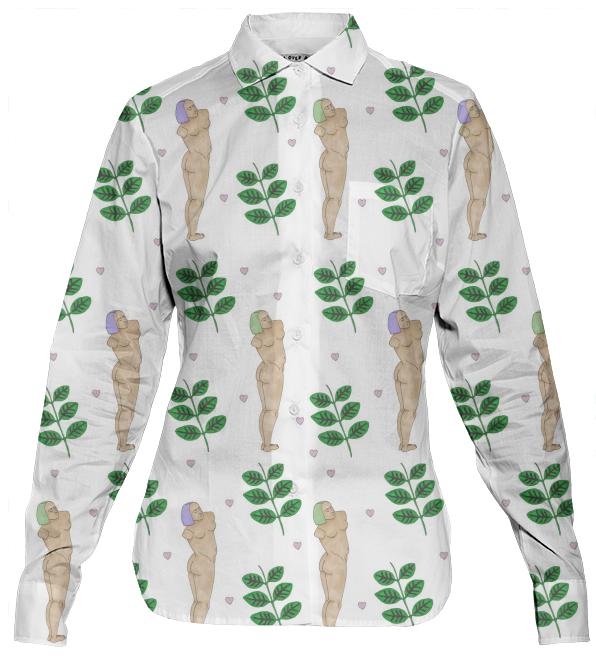 Basic womens button down with spread shirt collar front left breast pocket and side darts for a slim fit.
