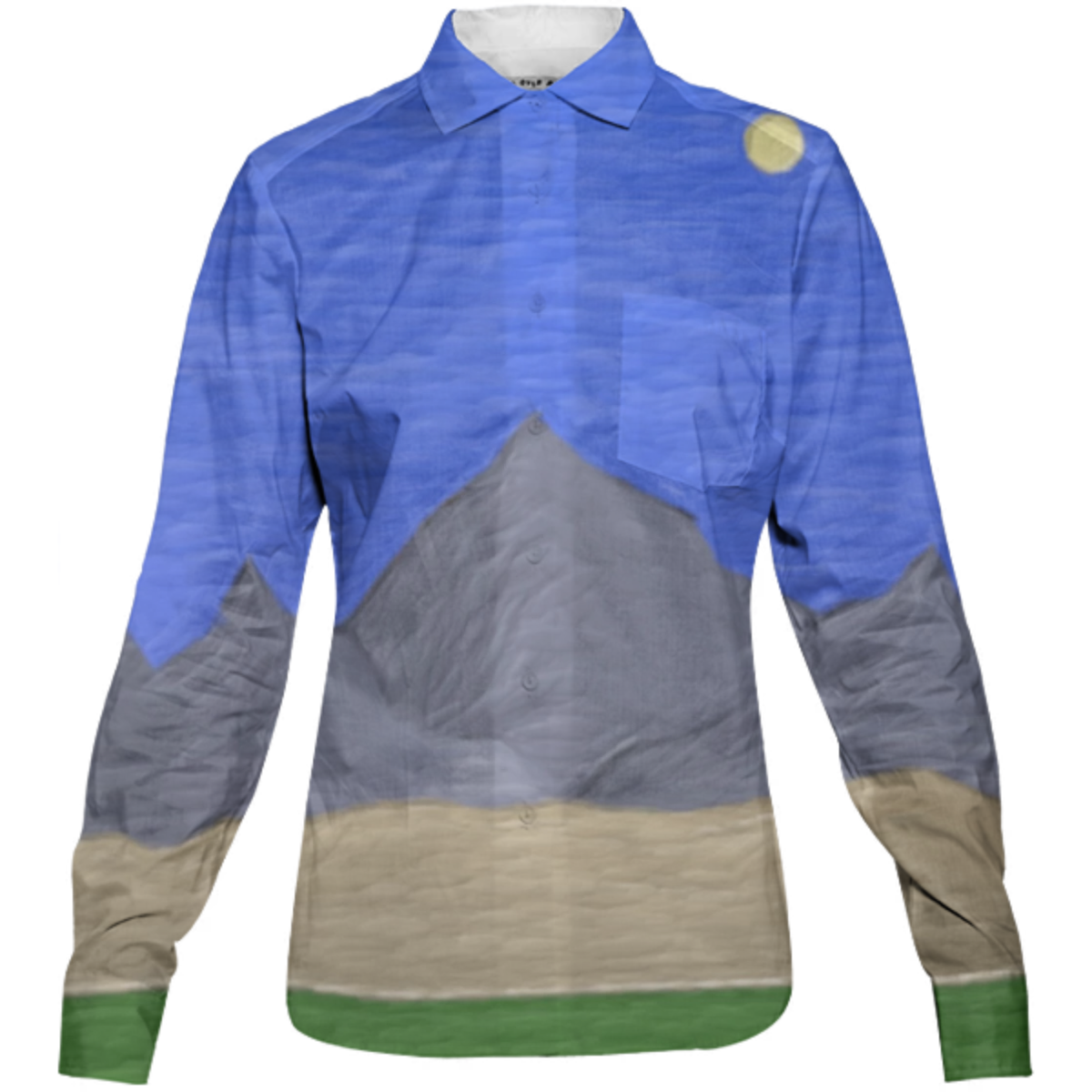 The uploaded file will be printed on the entire front and be mirrored on the back. Because of our cut and sew process some print elements on pockets seams and sleeves might not match up. For best results please upload a PNG or JPG with RGB color profile and dimensions of at least 35 inches width by 20 inches length. DPI can be as low as 72.