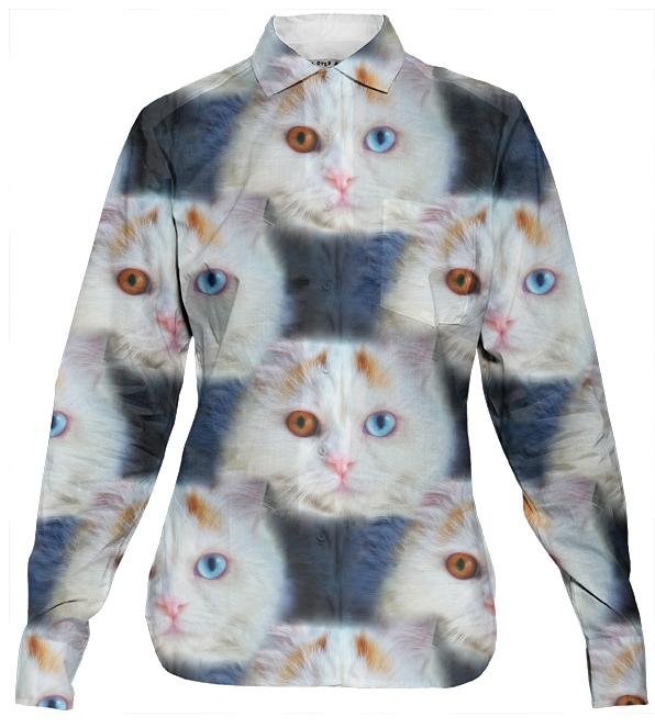 Odd Eyed White Persian Cat Women s Buttoned Shirt