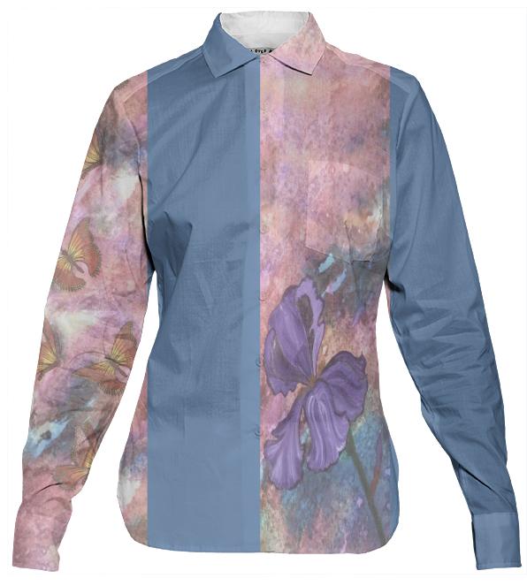 Pastel Monarchs Two Tone Women s Button Down