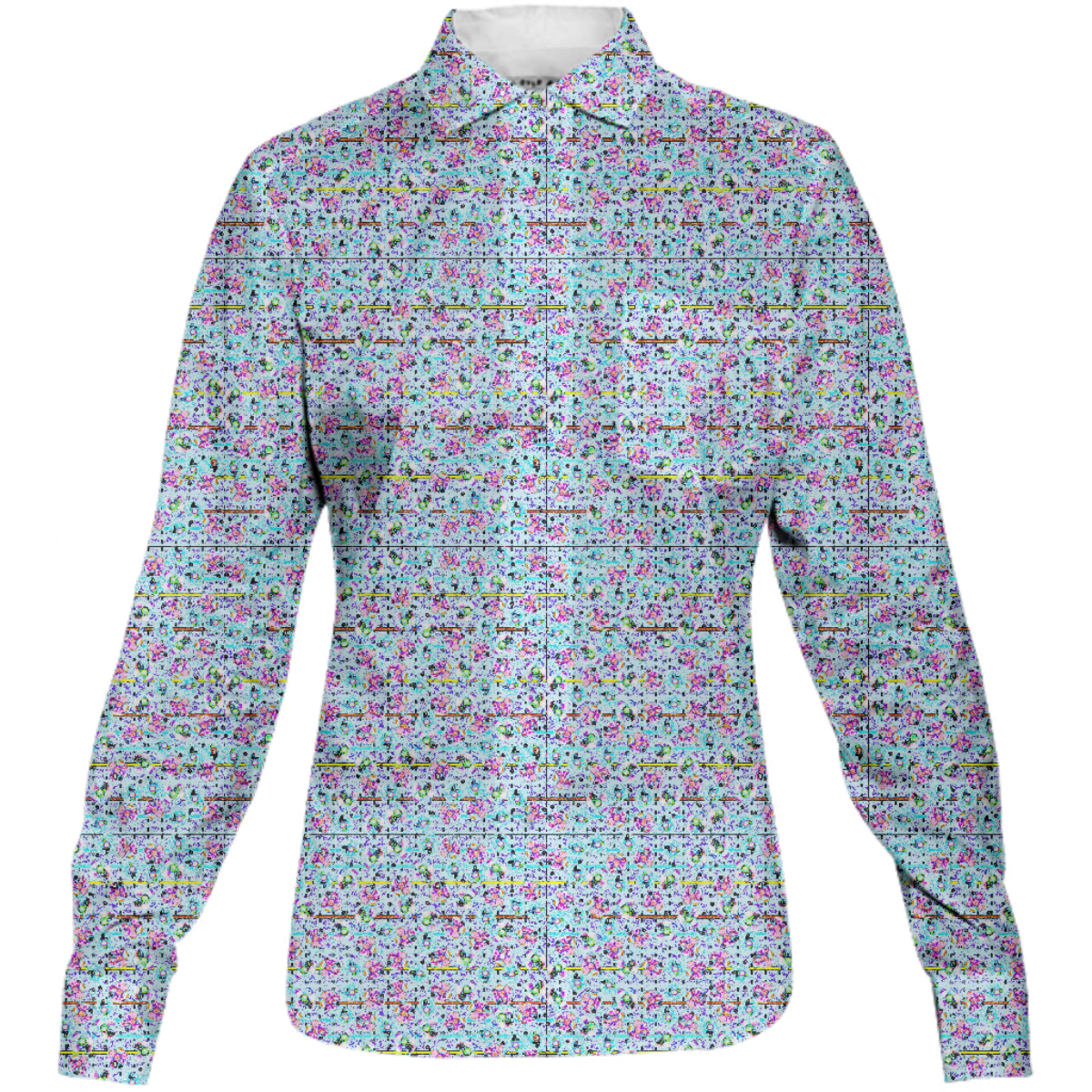 Basic womens button down with spread shirt collar front left breast pocket and side darts for a slim fit.