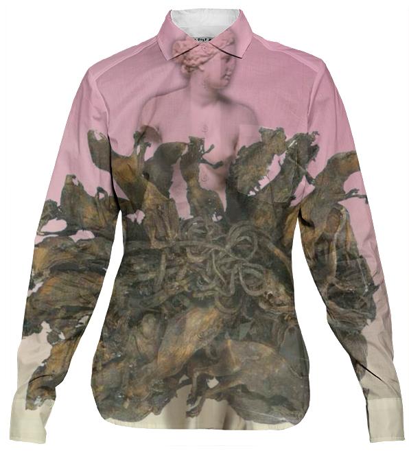Basic womens button down with spread shirt collar front left breast pocket and side darts for a slim fit.